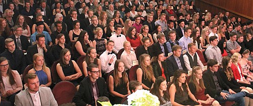 Kurzweiliges Programm mit Reden und Musik in der Oberschulen-Aula.