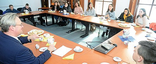 Im Rathaus erklärte Schmelzle den jungen Polen die Teezeremonie bei Krinthstuut mit Butter. Die Schüler zeigten sich interessiert und wollten auch wissen, warum man als CDU-Bundestagsmitglied Bürgermeister werde. „Norden ist meine Heimatstadt: So war es eine Entscheidung des Herzens“, sagte Schmelzle. Durch seinen einjährigen US-Aufenthalt in Montana habe Schmelzle gelernt, dass es wichtig sei, immer den Mut zu haben, die Landessprache zu sprechen: „Use it or lose it.“ Also riet er den Gastschülern, die Zeit in Norden zu nutzen, um so viel deutsch wie möglich zu sprechen. Die begleitenden Lehrer Malgorzata Rysicka, Iwona Kawalkowska und Aleksandra Gorecka sprechen und verstehen Deutsch teils sehr gut. Plattdeutsch noch nicht...