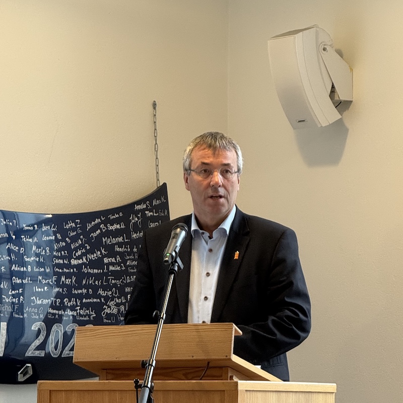 Alle Rednerinnen und Redner betonten: Der lange Weg zum Beitritt endet zwar, doch die eigentliche Arbeit beginnt jetzt. Schulleiterin Claudia Terstegen hob hervor, dass trotz Hürden wie der Corona-Pandemie der Prozess beharrlich verfolgt wurde und die Zustimmung der Schulgemeinschaft in beiden Abstimmungen deutlich ausfiel. Sie unterstrich die Selbstverpflichtung, die mit dem Titel einhergeht. Auch Schülersprecher Joel Günther betonte, dass der Titel SOR–SMC eine Kultur des Hinsehens, des Dialogs und eines friedlichen, demokratischen Miteinanders einfordert.