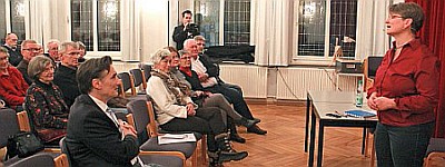 Sie prangerte „wissenschaftliches Geschwafel“ an und kritisierte all jene, die angeblich hochwissenschaftlich, tatsächlich aber vor allem unverständlich schrieben. Die vielen Zuhörer waren selbst bei einer kleinen Übung gefordert, Gedanken einfach einmal ungefiltert aufzuschreiben. Das könnten viele heute nicht mehr. Es sei aber wichtig, aus üblichen Mustern herauszukommen und Gedanken erst mal fließen zu lassen. „Wir müssen uns mit Denkprozessen auseinandersetzen“, forderte sie und zeigte sich äußert kritisch gegenüber der derzeitigen Praxis an deutschen Hochschulen. „Wir züchten Plagiatoren“, warnte sie. Da vielfach Studenten und Doktoranden gar nicht wüssten, was von ihnen verlangt werde, trauten sie sich nicht, Fragen wirklich auf den Grund zu gehen.
